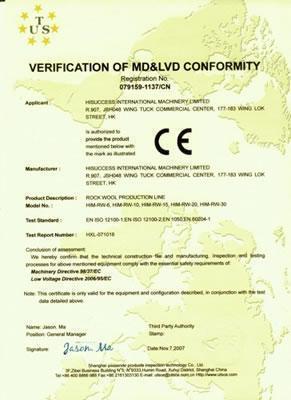 --HiSuccess International'dan ana üretim hatları için --CE Sertifikalar;